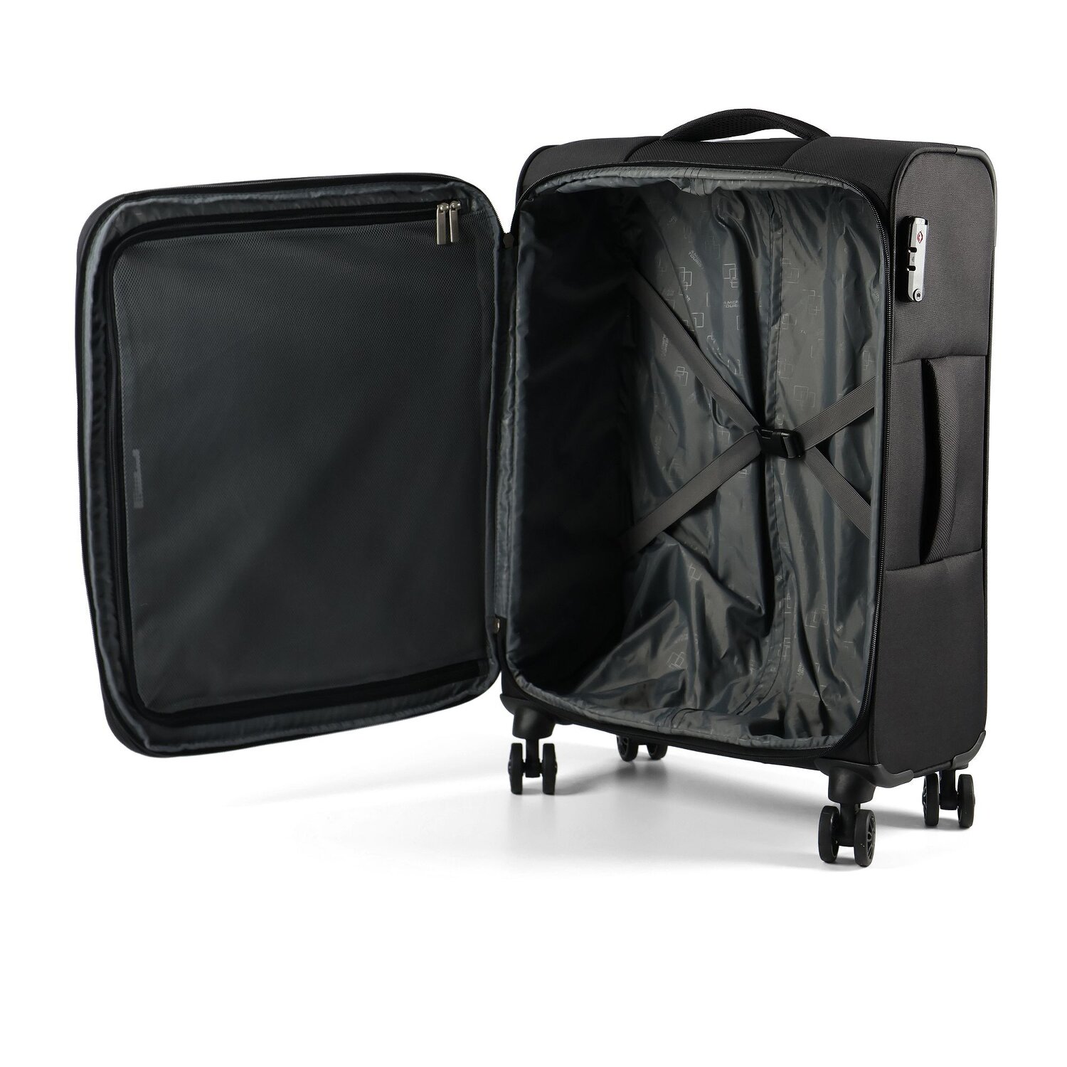 - Ausstattung: Tasche(n) außen, Netzfach, Kreuzpackgurt, Dehnfalte, arretierbarer Griff