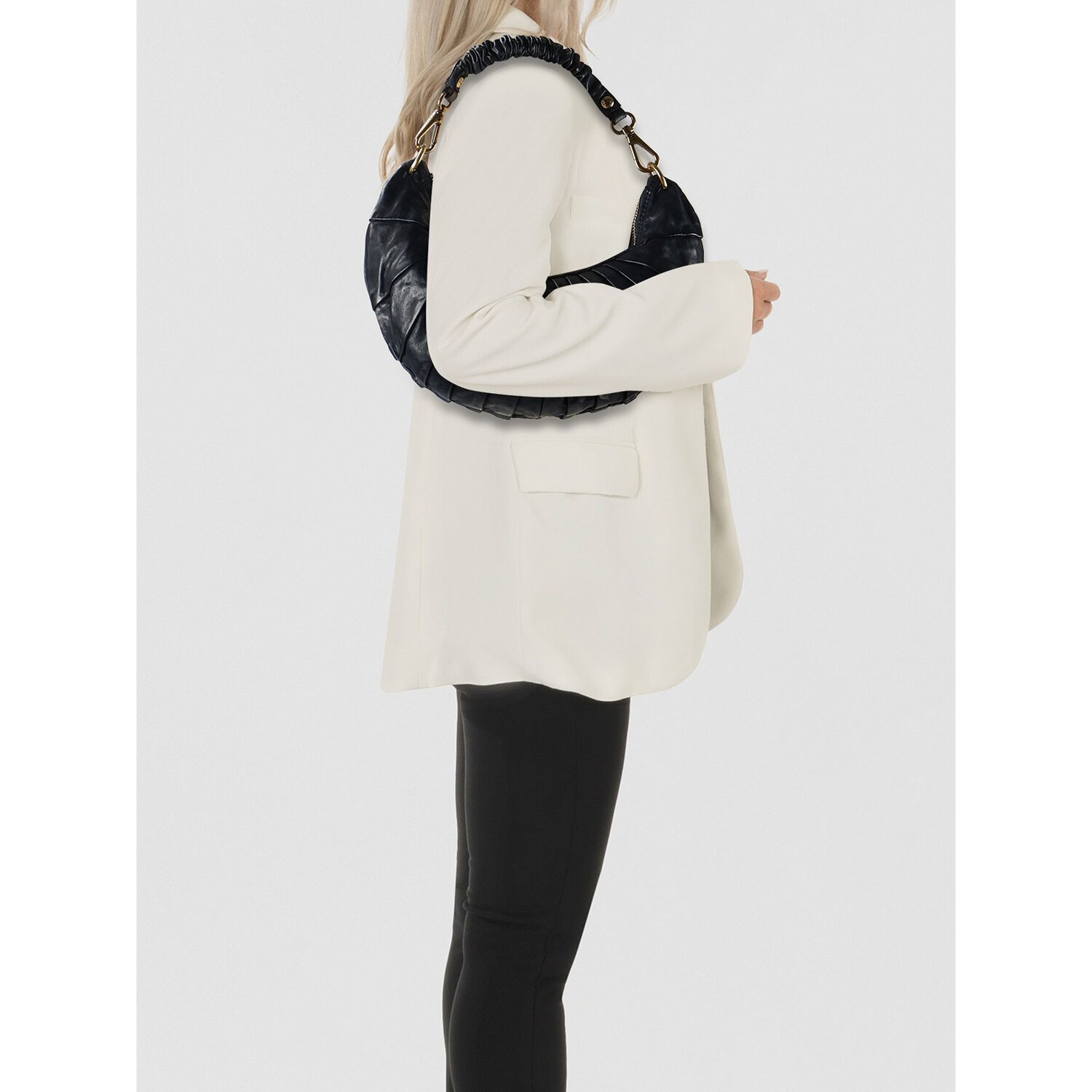 Luna Schultertasche Leder 34 cm Variante ghiaccio