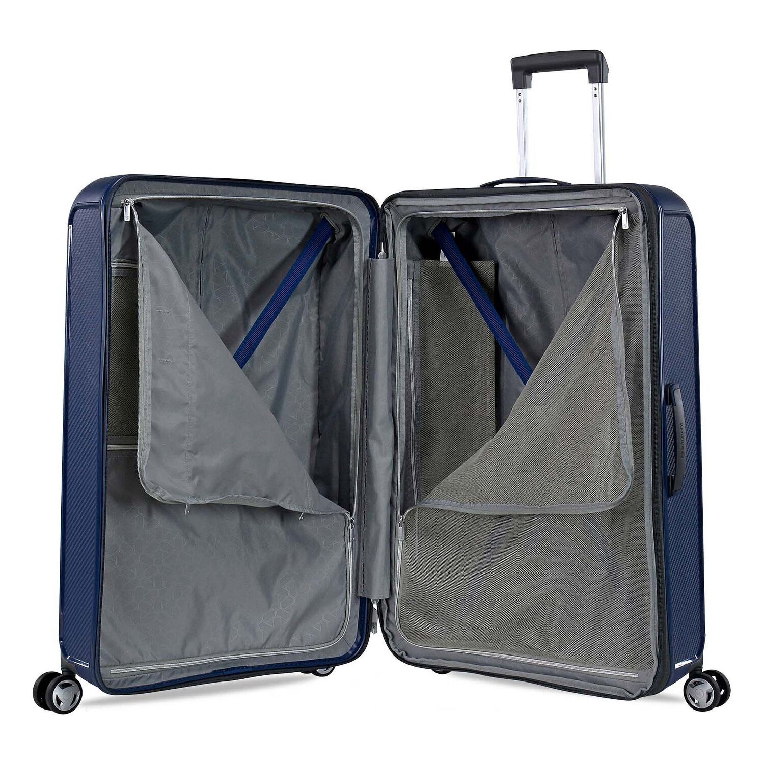 - Ausstattung: Reißverschlussfach, Netzfach, Kreuzpackgurt, Dehnfalte, arretierbarer Griff
