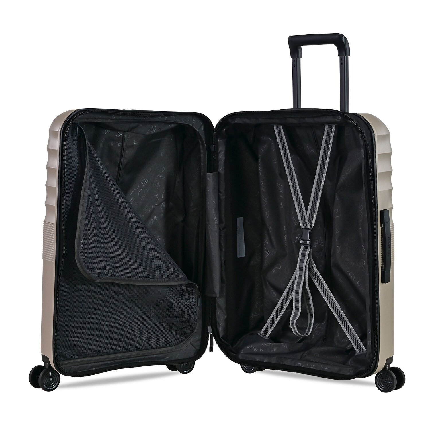 - Ausstattung: Wäschefach, Kreuzpackgurt, Dehnfalte, arretierbarer Griff