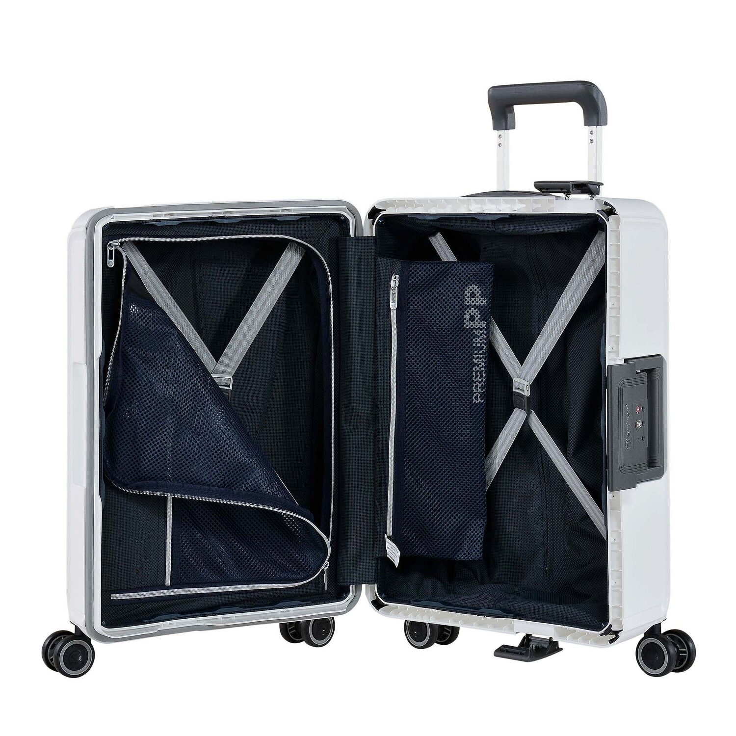 - Ausstattung: Wäschefach, Netzfach, Kreuzpackgurt, arretierbarer Griff