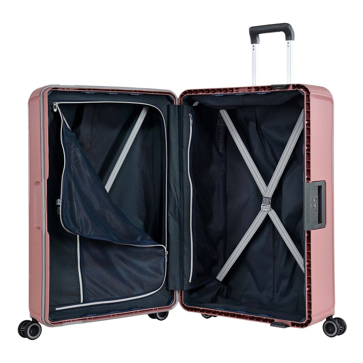 - Ausstattung: Wäschefach, Netzfach, Kreuzpackgurt, arretierbarer Griff