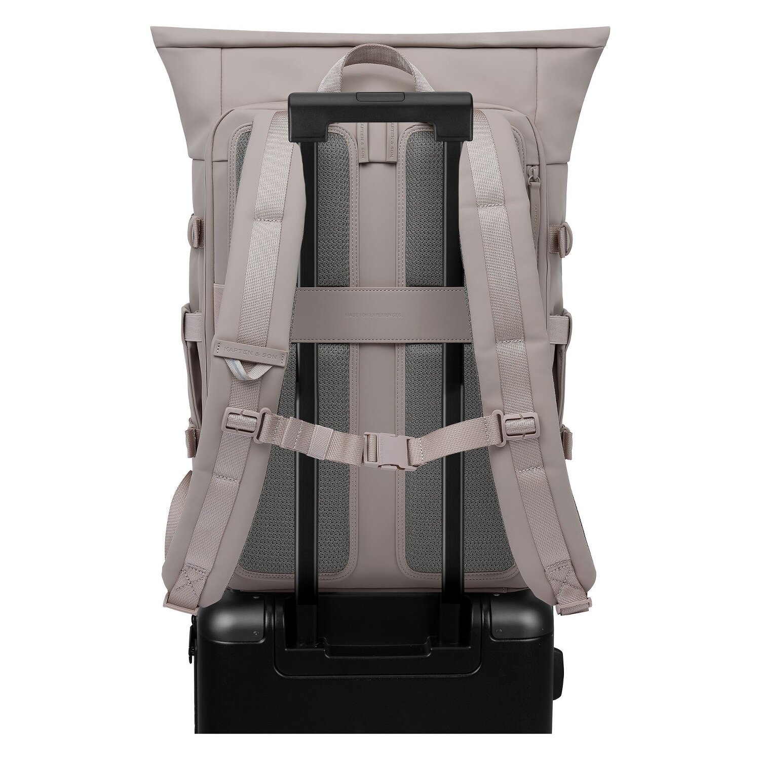 - Ausstattung: Trinkflaschenfach, Tasche(n) außen, Rückenpolsterung, Brustgurt, auf Trolley steckbar