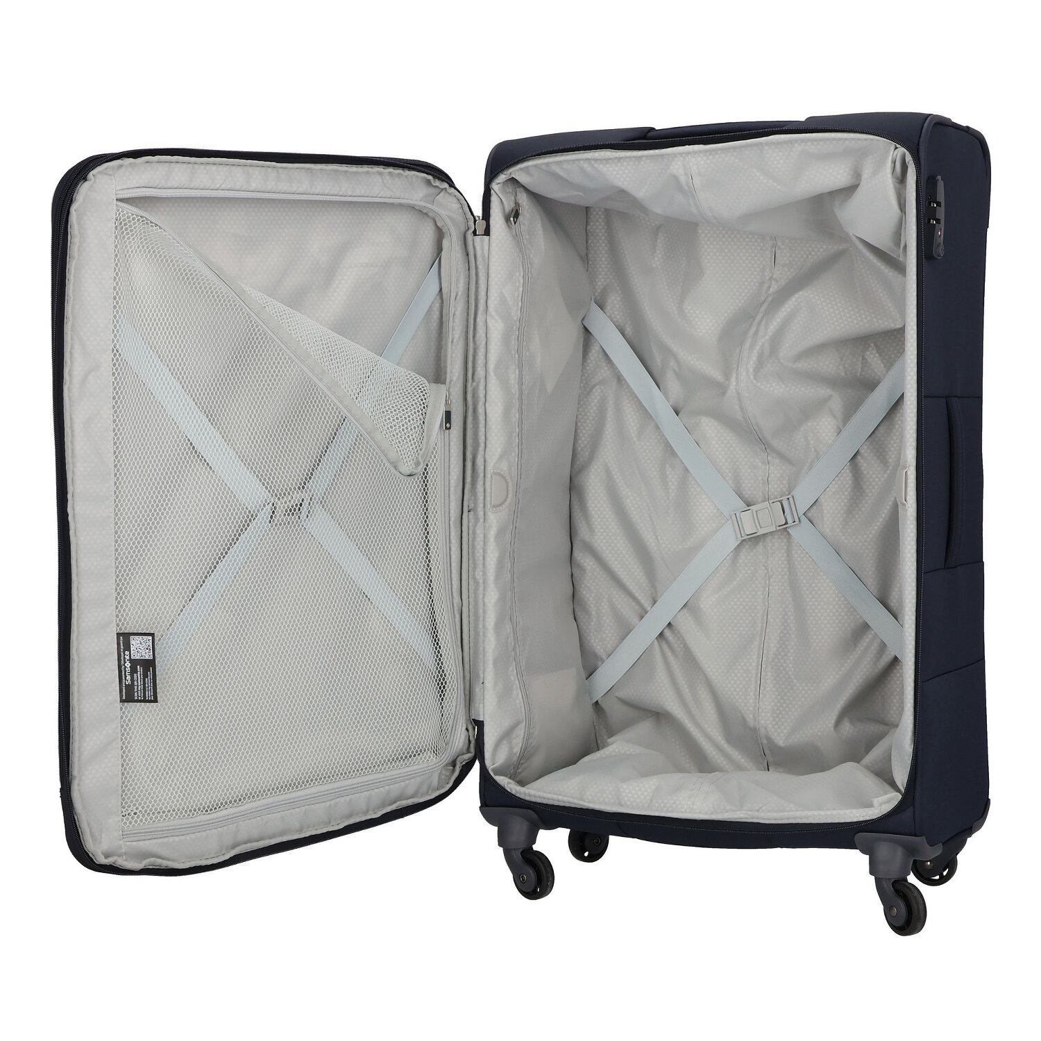 - Ausstattung: Tasche(n) außen, Kreuzpackgurt, Innenfutter, Dehnfalte, arretierbarer Griff