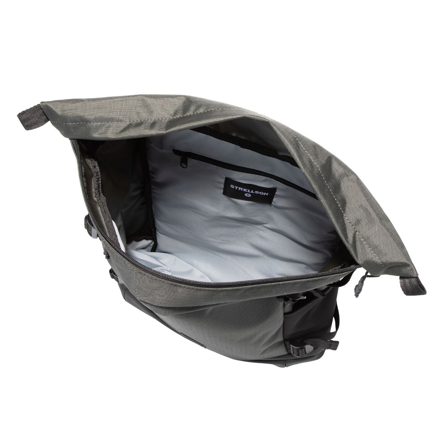 - Ausstattung: Rückenpolsterung, Reißverschlussfach, Kompressionsriemen, auf Trolley steckbar