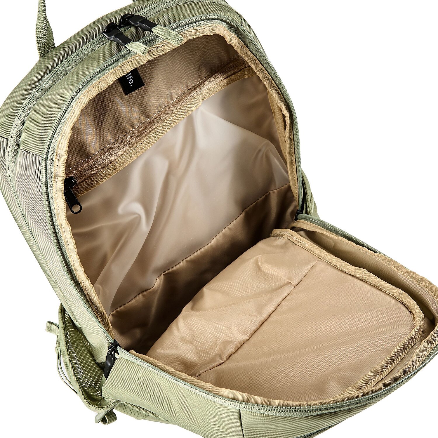 - Ausstattung: Trinkflaschenfach, Tasche(n) innen, Tasche(n) außen, Rückenpolsterung, Reißverschlussfach, Netzfach, Handyfach, Brustgurt, auf Trolley steckbar