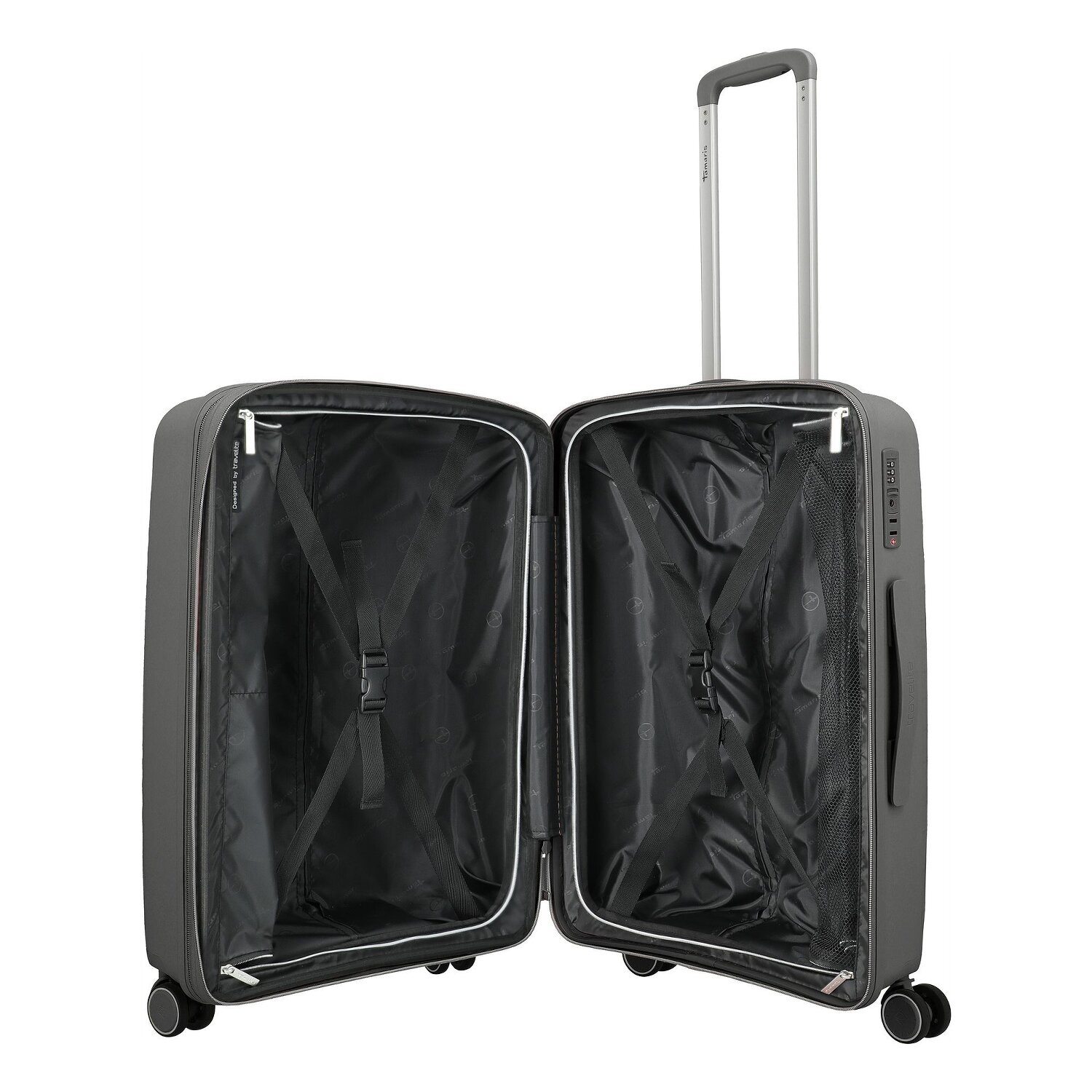 - Ausstattung: Wäschefach, Reißverschlussfach, Kreuzpackgurt, Dehnfalte, arretierbarer Griff