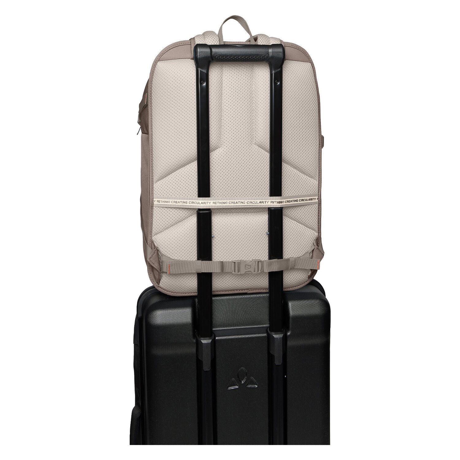 - Ausstattung: Trinkflaschenfach, Tasche(n) innen, Tasche(n) außen, Rückenpolsterung, Kompressionsriemen, Brustgurt, Beckengurt, auf Trolley steckbar